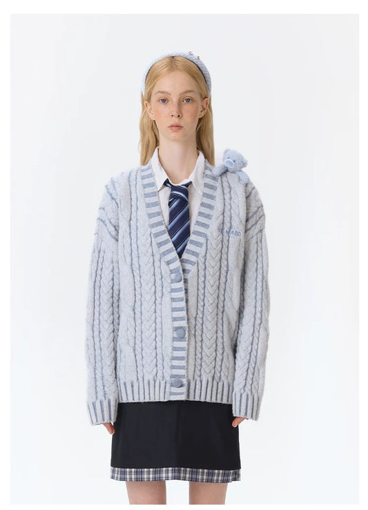 13DE MARZO Bear Yarn Weave Cardigan Blue