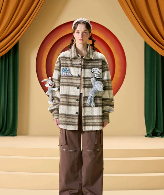 13DE MARZO x LOONEY TUNES Bugs Bunny Plaid Shirt Coat Kelp