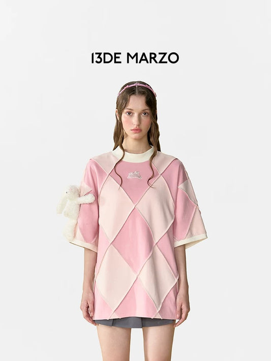 13DE MARZO Hemming Diamond Check T-shirt Burlwood