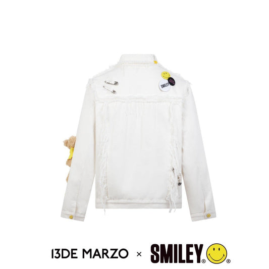 13De Marzo x Smiley Broken Suture Denim Jacket White