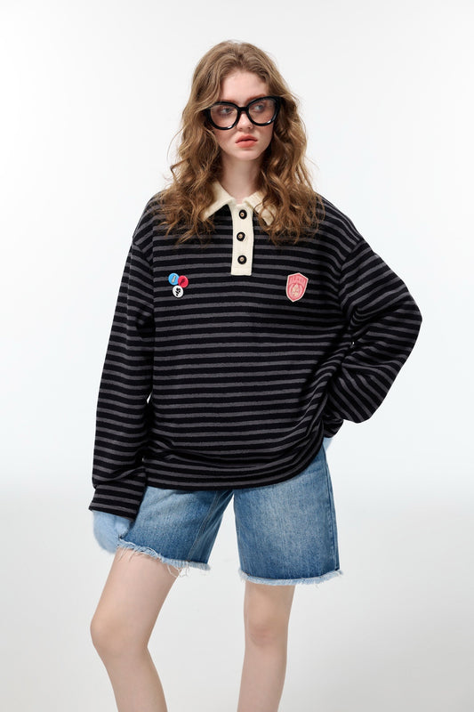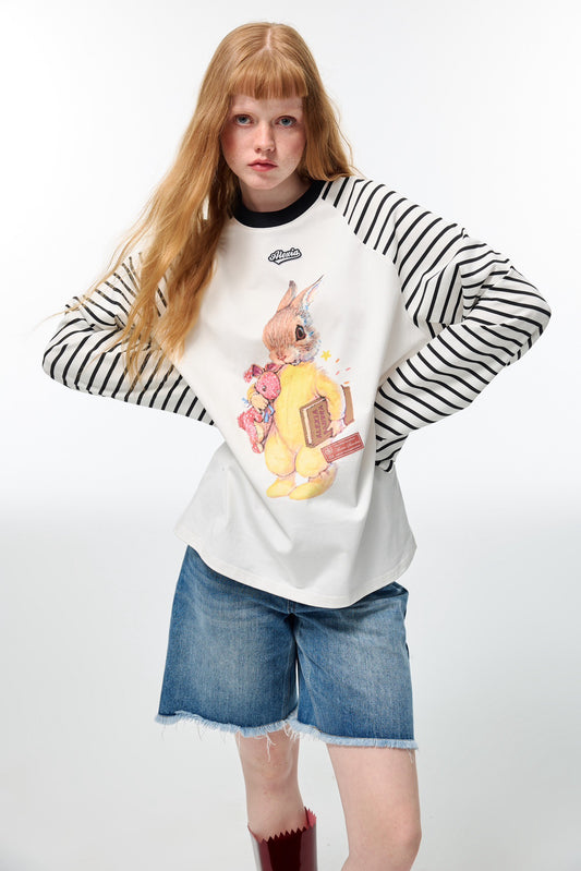 Alexia Sandra Big Bunny Contrast Color Stripe Long Sleeve T-Shirt Black