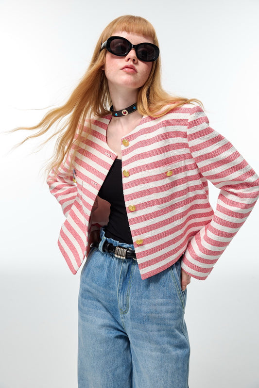 Alexia Sandra Gold Buckle Stripe Jacket Red