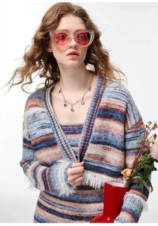 Alexia Sandra Metal Logo Stripe Mohair Cardigan