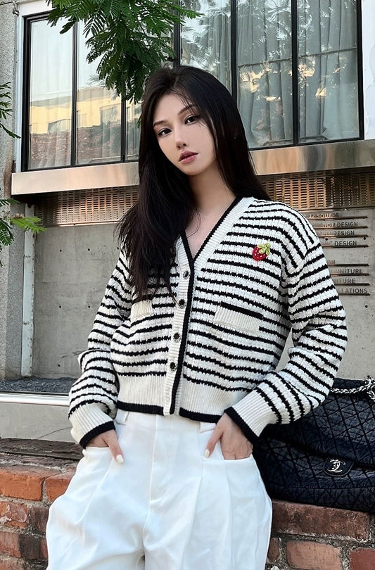 Alexia Sandra Simple Line Strawberry Sweater Navy