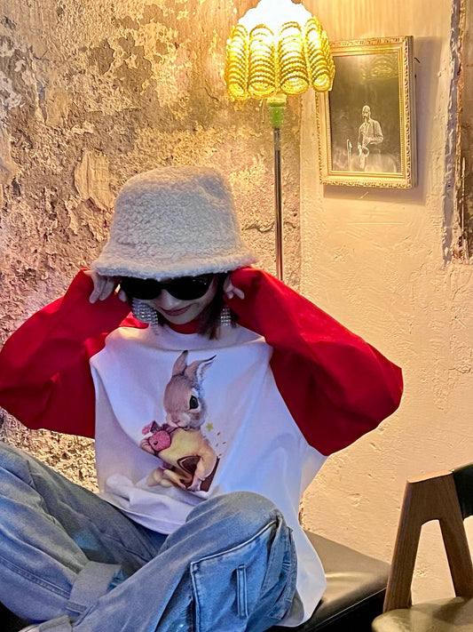 Alexia Sandra Big Bunny Contrast Color Long Sleeve T-Shirt Red