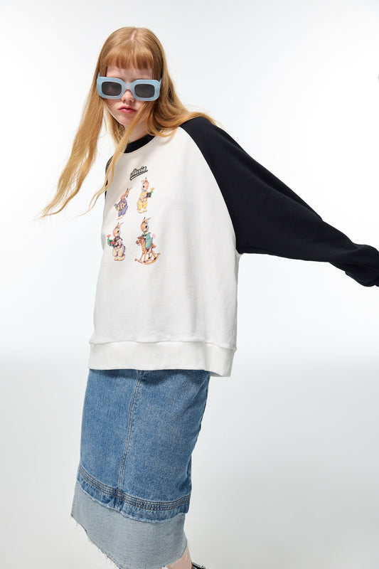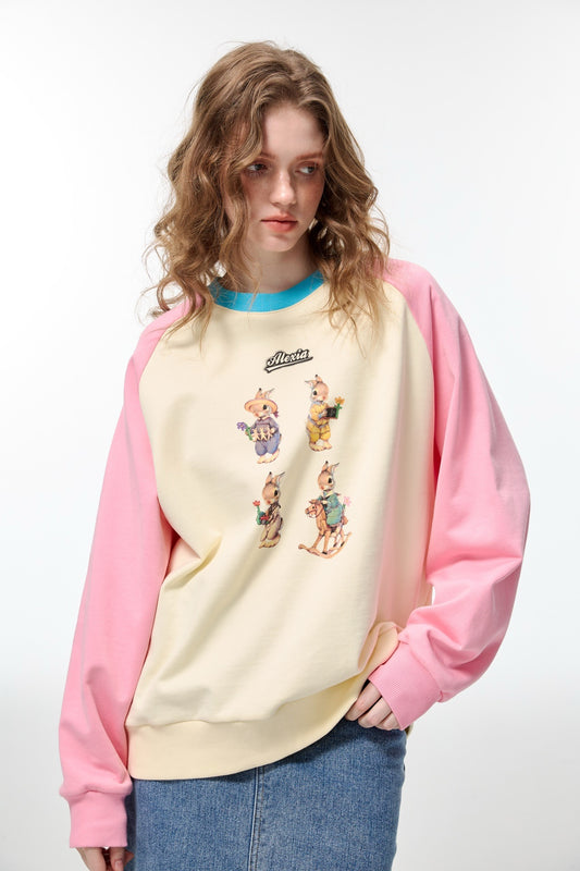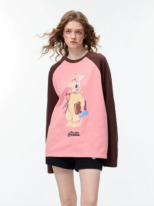 Alexia Sandra Big Bunny Contrast Color Long Sleeve T-Shirt Pink
