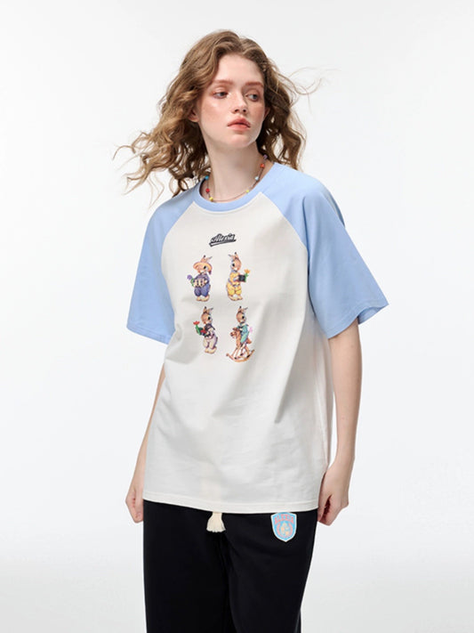 Alexia Sandra Four Bunnies Contrast Color Raglan T-Shirt Blue/White