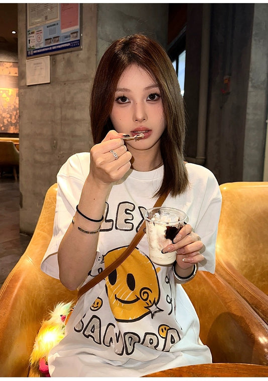 Alexia Sandra Curve Smiley Face T-Shirt White