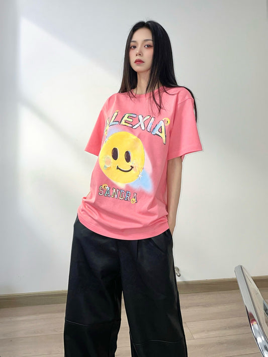 Alexia Sandra Rainbow Smiley Face T-Shirt Pink