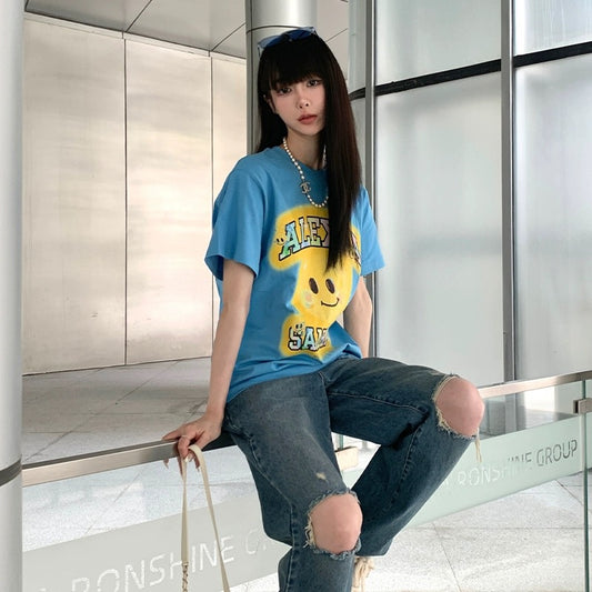 Alexia Sandra Glowing Smiley Face T-Shirt Blue