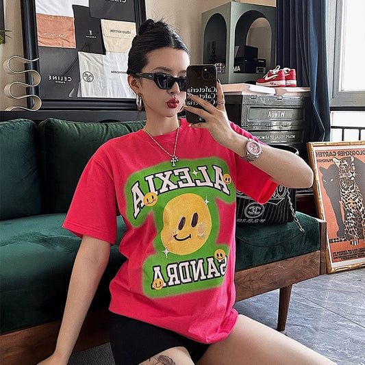 Alexia Sandra Curve Smiley Face T-Shirt Red