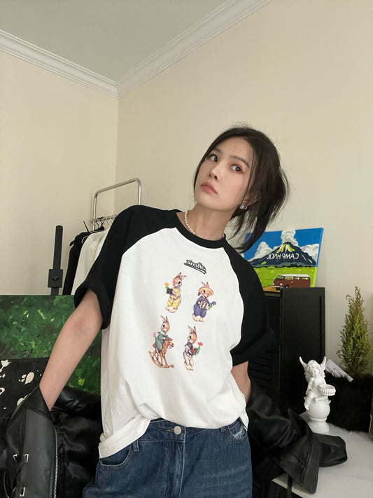 Alexia Sandra Four Bunnies Contrast Color Raglan T-Shirt Black/White