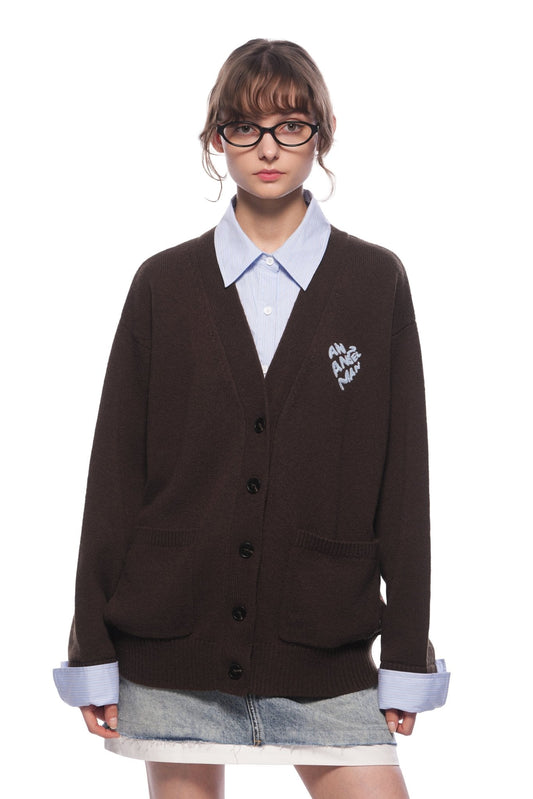 Ann Andelman Dark Gray Butterfly Jacquard V-neck Cardigan