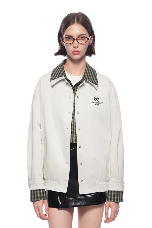 Ann Andelman Light Apricot Plaid Patchwork Faux Two-piece Loose Coat