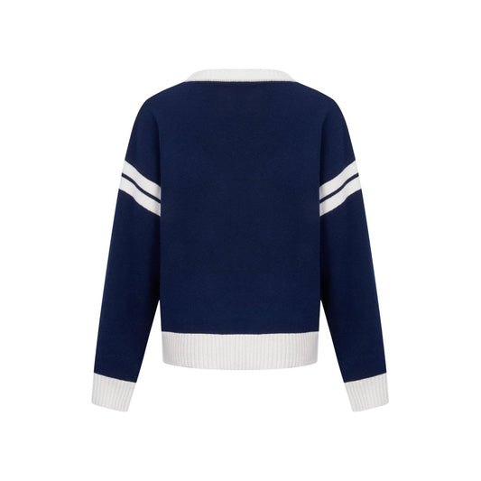 Ann Andelman Navy Contrast Color V-neck Wool Cardigan