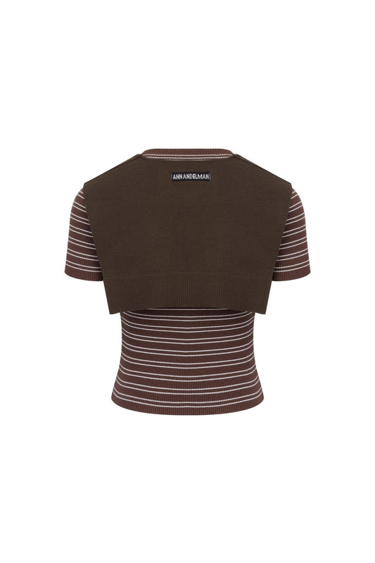 Ann Andelman Brown Shawl Two-Piece Striped T-Shirt