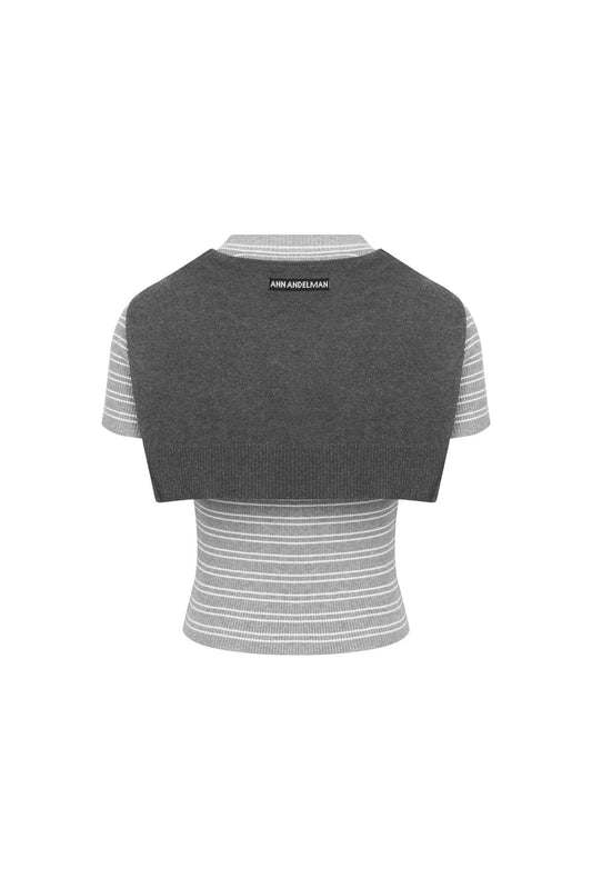 Ann Andelman Gray Shawl Two-Piece Striped T-Shirt
