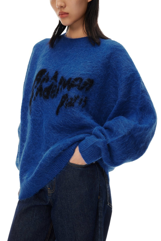 Ann Andelman Blue Alpaca Logo Crewneck Sweater