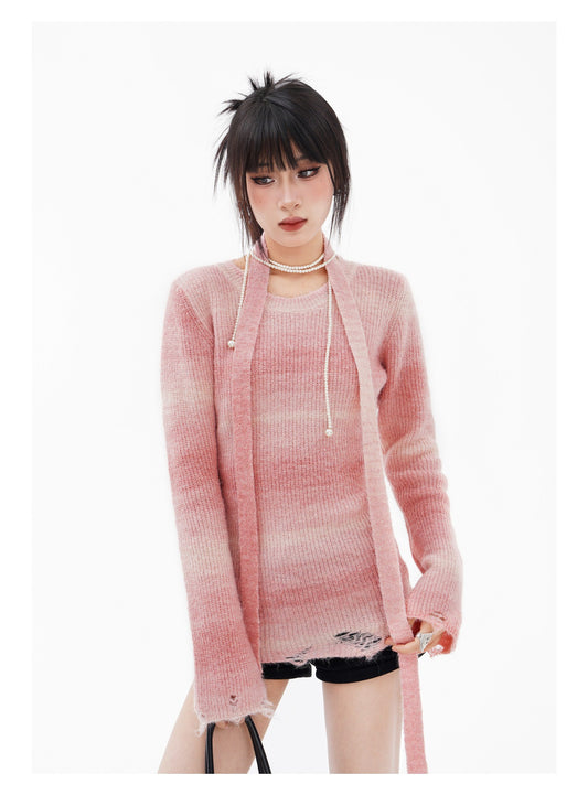 BLUREMO Gradient Versatile Waist Sweet Knitted Sweater