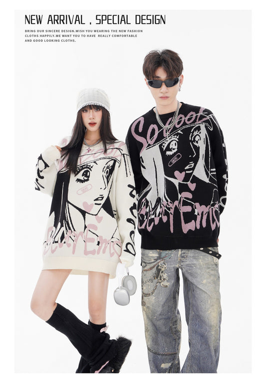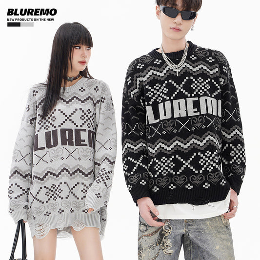 BLUREMO Retro Mosaic Love Pattern Sweater