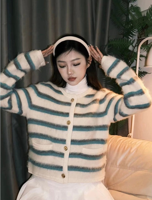 Charlie Luciano Striped Mohair Cardigan Green