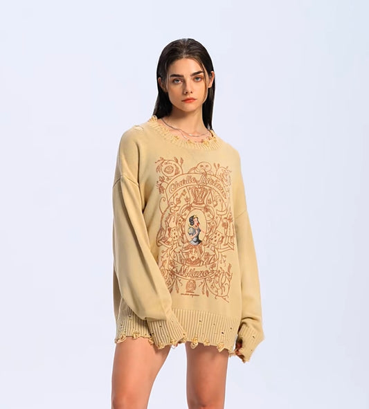Charlie Luciano Geometric Pattern Crewneck Sweater Beige