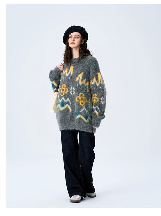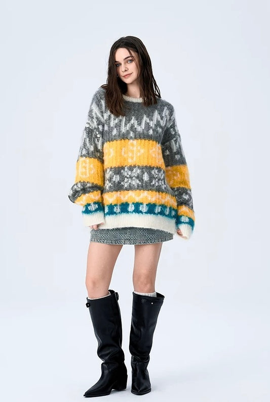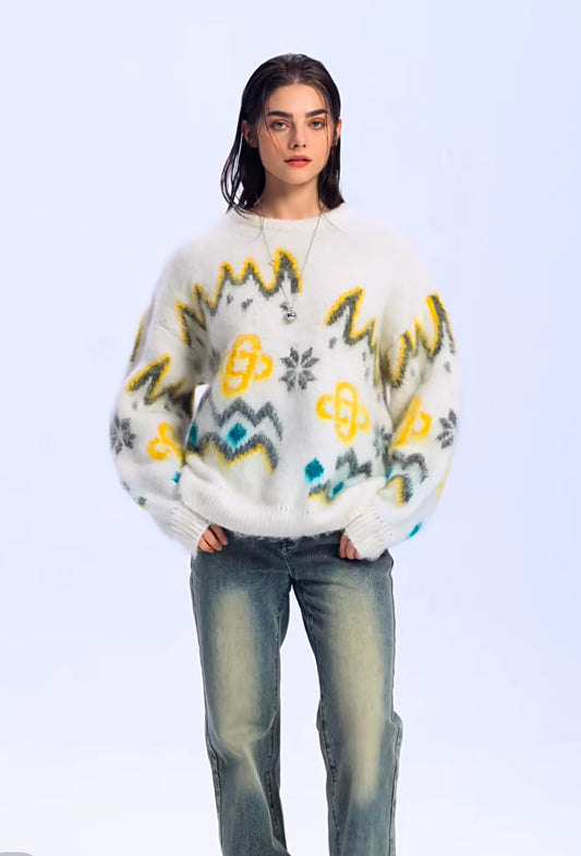 Charlie Luciano Fair Isle Pattern Crewneck Sweater