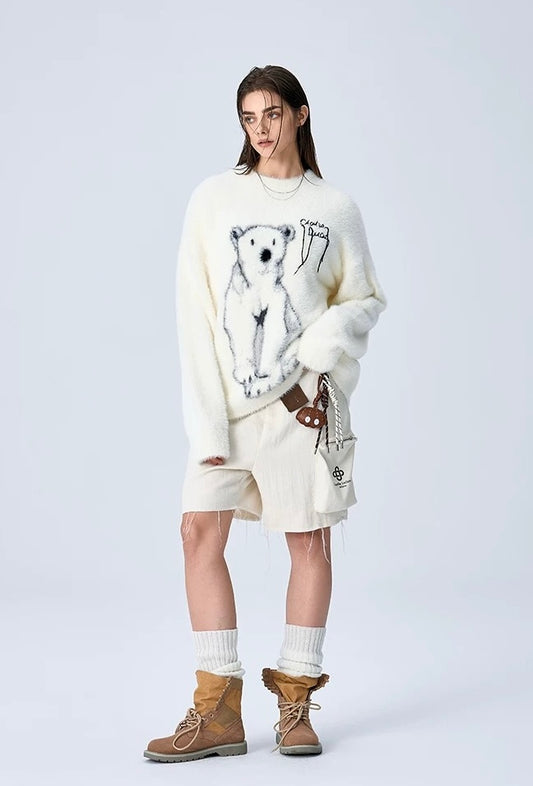 Charlie Luciano Polar Bear Crewneck Sweater White