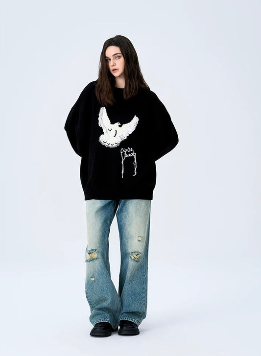 Charlie Luciano Dove of Peace Crewneck Sweater Black