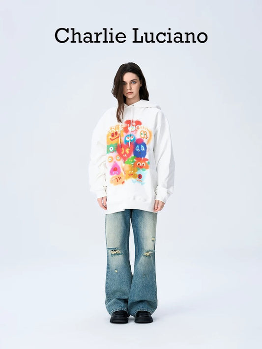 Charlie Luciano Cute Graffiti Logo Hoodie White