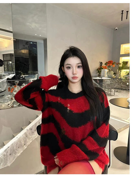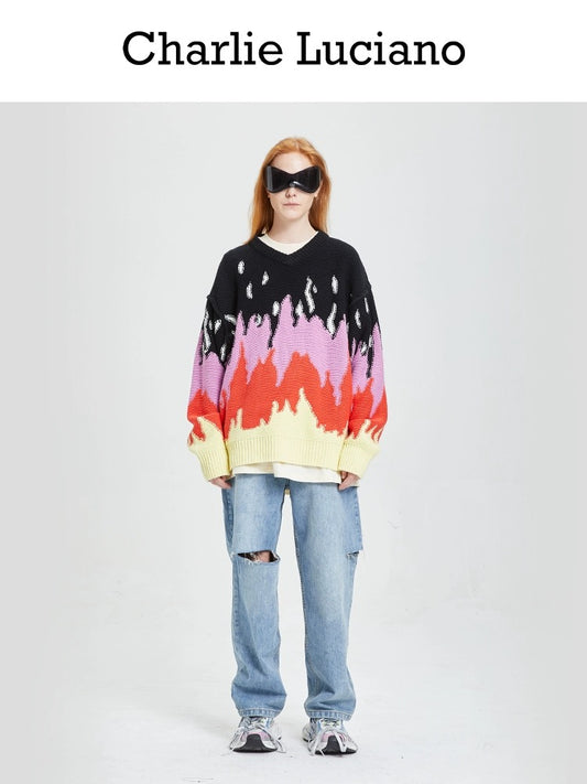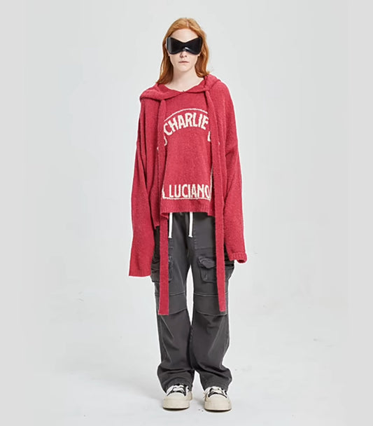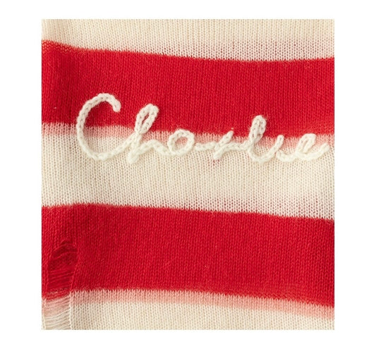 Charlie Luciano Logo Striped Tassel Sweater Red