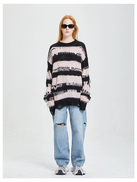 Charlie Luciano Striped Tassel Sweater Pink/Black