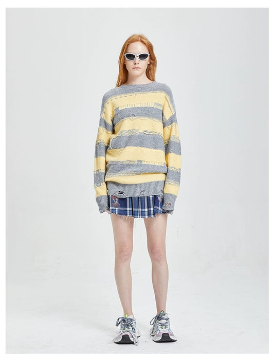 Charlie Luciano Striped Tassel Sweater Yellow/Grey