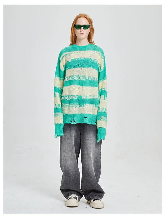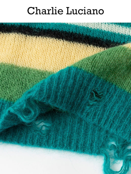 Charlie Luciano Logo Striped Tassel Sweater Green