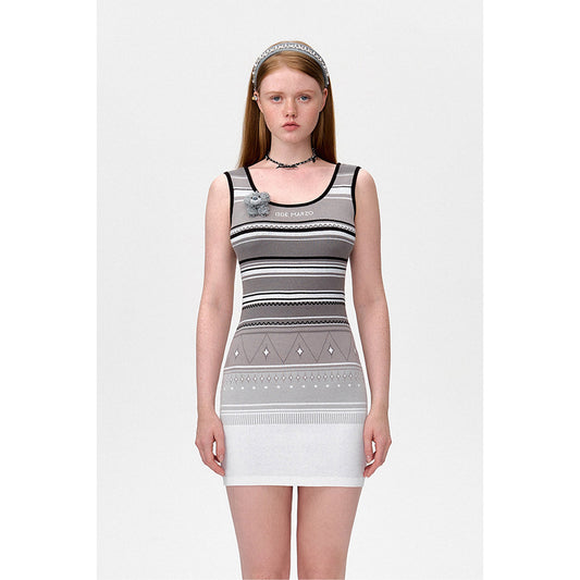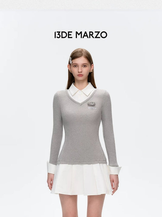 13DE MARZO Faux Two-Piece Sweater Dress Grey