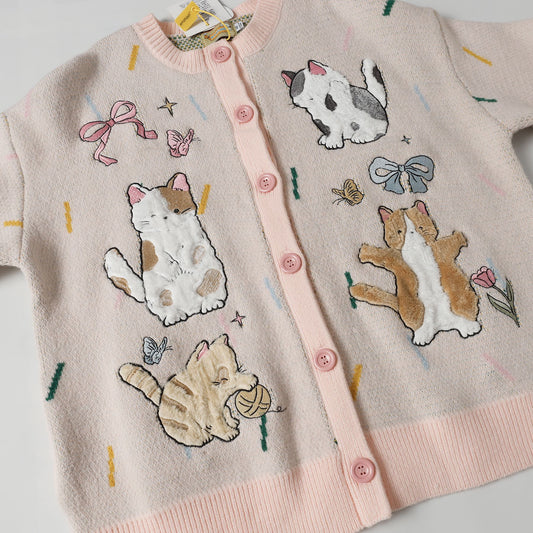 ✦FX✦ Cute Kitten Embroidered Striped Knit Cardigan Pink