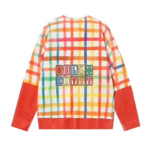 ✦FX✦ Hello Kitty Colorful Grid Casual Cardigan
