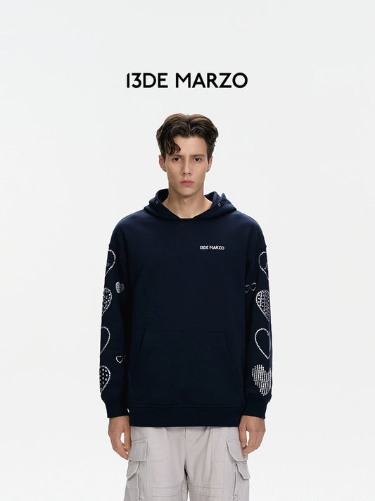13DE MARZO Doozoo Rhinestone Heart Hoodie Dark Blue