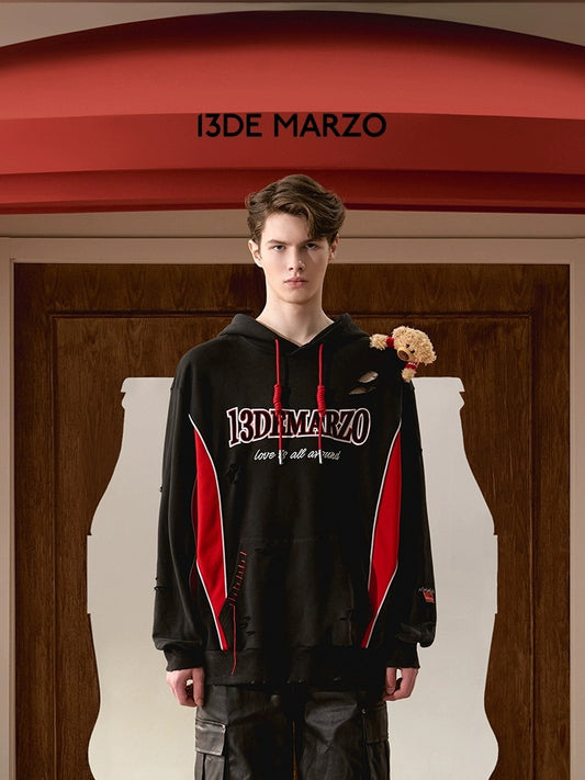 DIANA VEVINA Tassel Letter Cashmere Hoodie Red