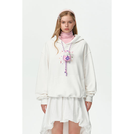 Charlie Luciano Cute Graffiti Logo Hoodie White