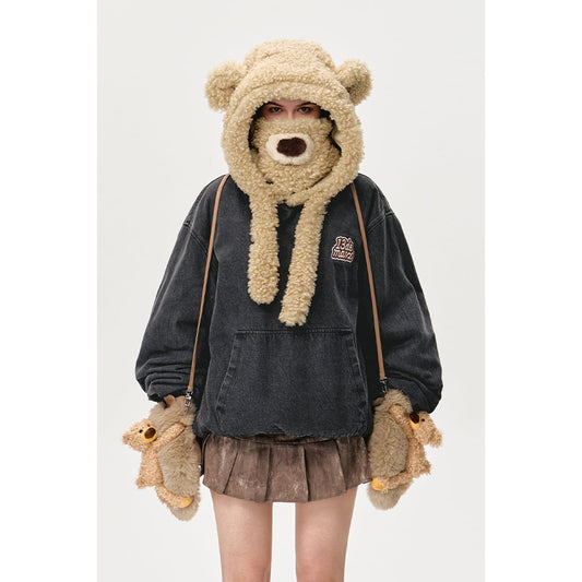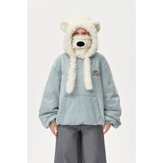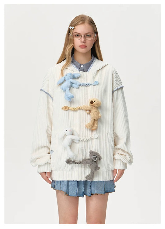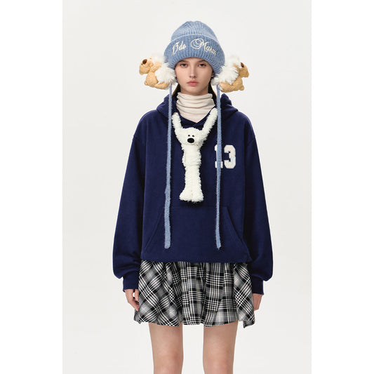 BLUREMO Suede Foam Letter Cute Animal Hoodie