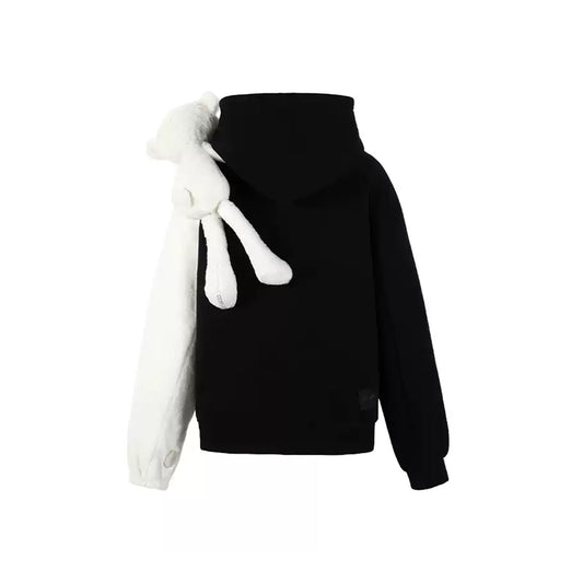 13DE MARZO Plush Bear Color Blocked Raglan Hoodie Black