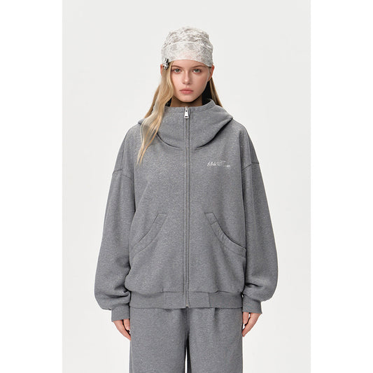 13DE MARZO Star Sand Zip Up Casual Hoodie Grey