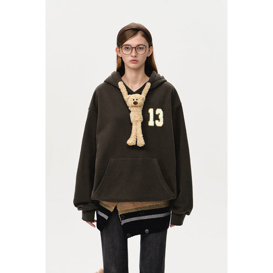 13DE MARZO Doozoo Bear Adjustable String Hoodie Brown