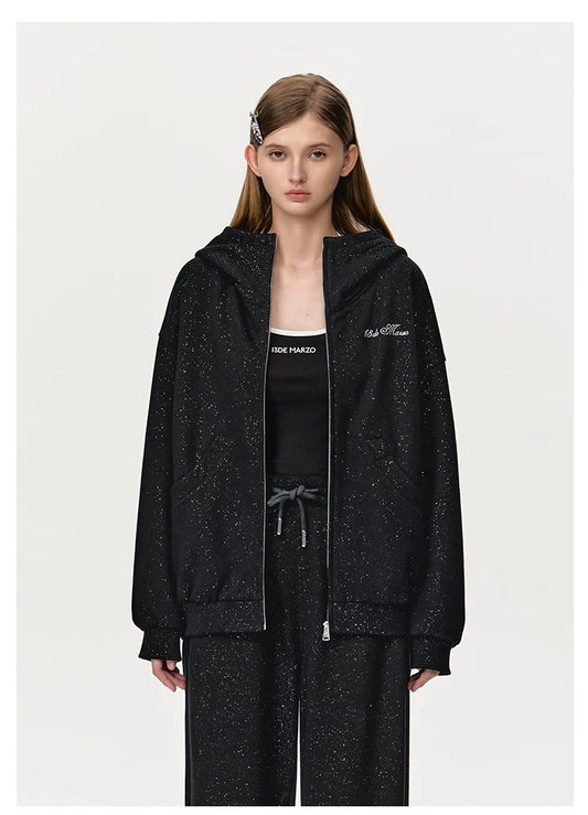 13DE MARZO Star Sand Zip Up Casual Hoodie Black