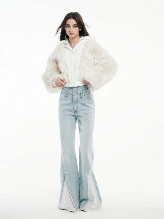 Jac Fleurant Double V Waistband Patchwork Bootcut Jeans