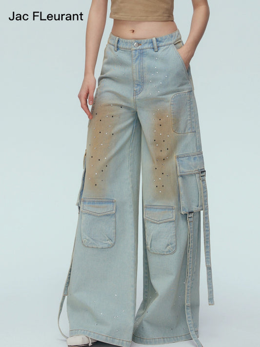 Jac Fleurant Denim Pocket Strap Cargo Pants Blue