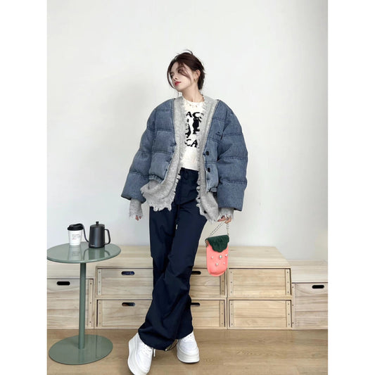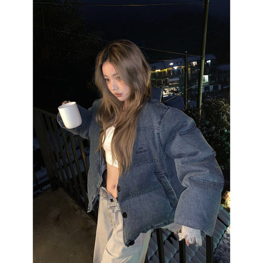 Jac Fleurant Destroyed Fake-2-Piece Down Jacket Washed Blue