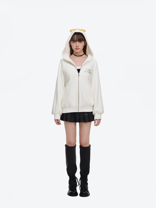 13DE MARZO Angel Devil Bear Zipped Hoodie White