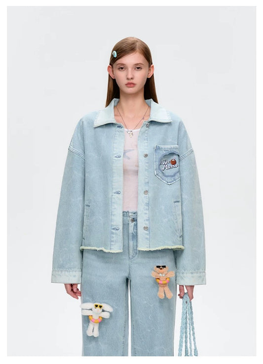 13DE MARZO Holiday Plushies Denim Jacket Blue